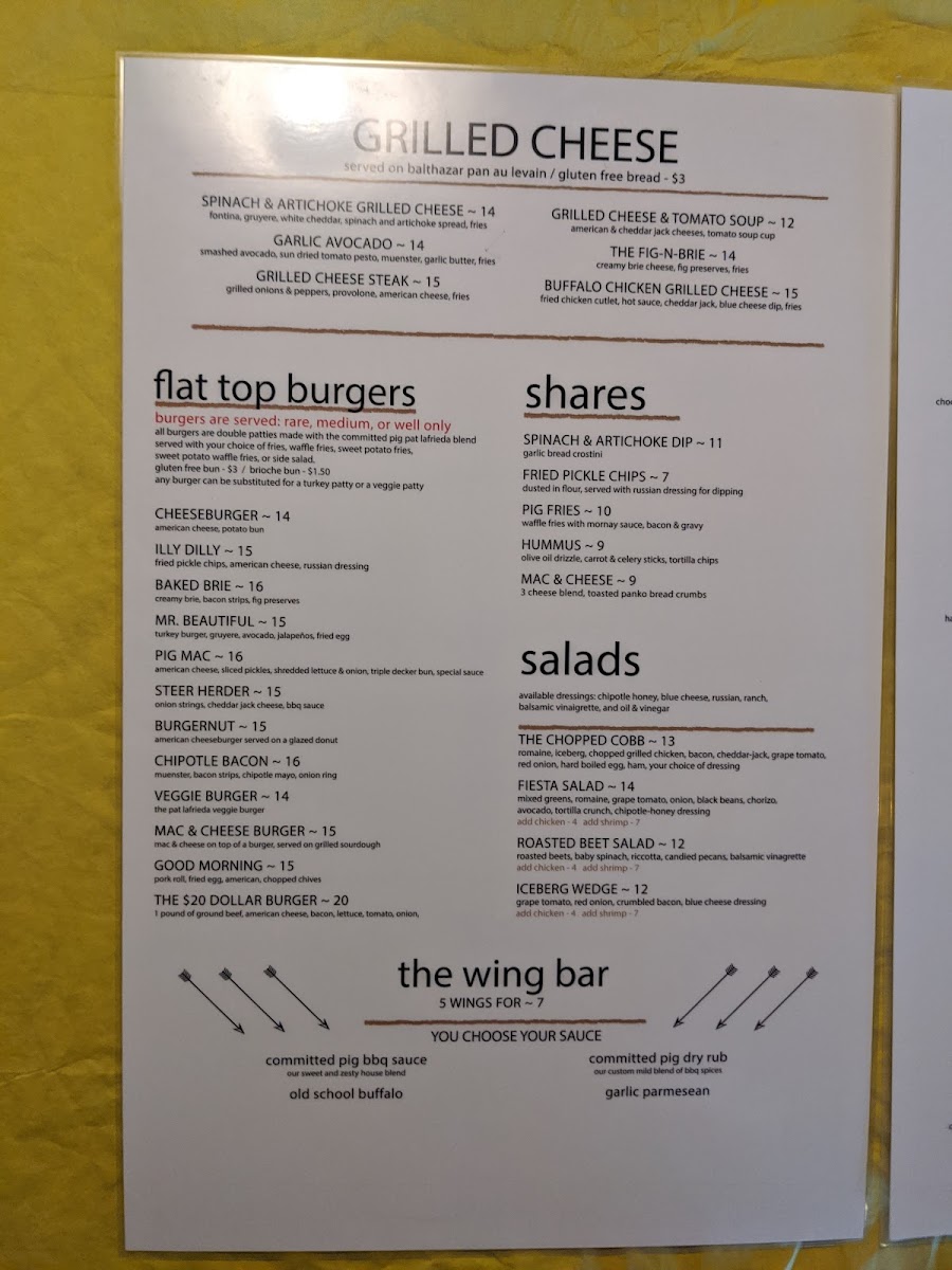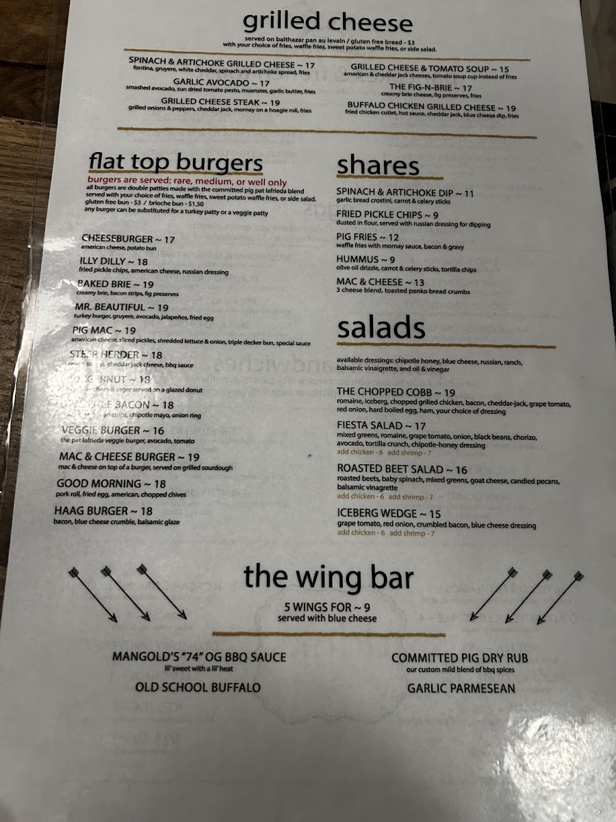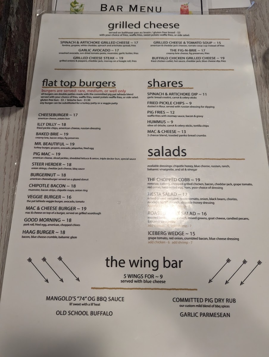 Welcome to The Committed Pig - Manasquan, a culinary treasure located in the heart of Manasquan, NJ. This vibrant eatery offers a menu that captivates with its mouthwatering selection of comfort food. Indulge in an array of delicious wings, featuring the classic Old School Buffalo Wings and Garlic Parmesan Wings, each priced at just $9.90. For a heartier option, their signature burgers are a must-try, with customer favorites like the Brie Burger and the famed Pig Mac stealing the spotlight.